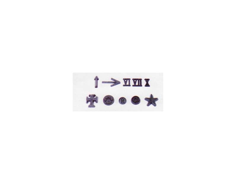 With 20 output. Sizes 10, 12, 15, 20, 25, 30 and 45 mm in height. Special for making or posthumous commemorative plates.