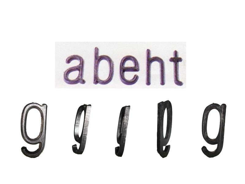 Complemento do tipo A, com 25º de saída. Tamanhos 10, 15, 20 e 25mm de altura, alfabeto minúsculos.