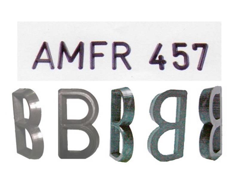 Con 20 de salida. Tamaños 10, 12, 15, 20, 25, 30 y 45 mm de altura. Especial para la fabricación o placas conmemorativas póstumos.